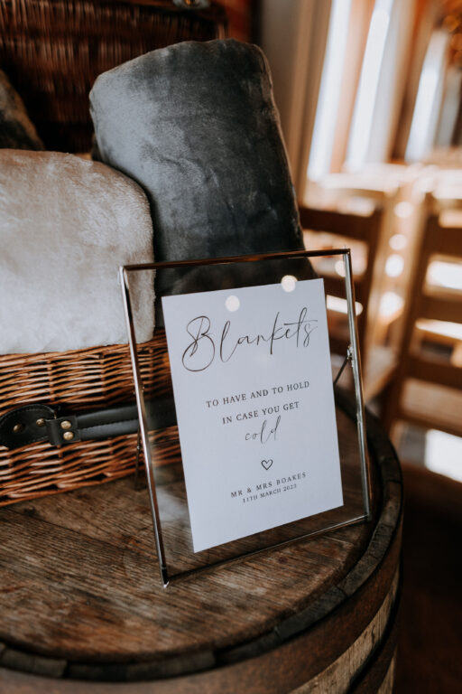If there’s a chill in the air, blankets are a thoughtful touch to keep your guests warm while they mingle. It’s those little details that make a March wedding so special, rain or shine.